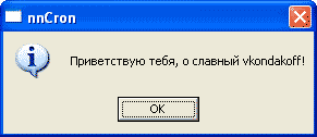 Выводит на экран небольшую подсказку с заданным заголовком и текстом и продолжает выполнение задачи вне зависимости от реакции пользователя. Подсказка появляется возле иконки nnCron в системном трее.