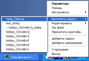 nnCron позволяет использовать в задачах скриптовые языки VBScript и JScript, а также регулярные выражения (regexp). Может выполнять произвольные программы на языке Форт (SP-Forth), расширяется за счет плагинов и т. д...