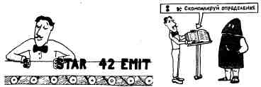 Здесь STAR — имя, а 42 EMIT — определение. Заметьте, что мы отделили двоеточие и точку с запятой от соседних с ними слов одним пробелом. Чтобы определения Форта легче воспринимались, условимся отделять имя определения от собственно определения тремя пробелами.