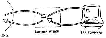 Такая организация позволяет многократно модифицировать содержимое блока, не обращаясь всякий раз к дисководу. Поскольку обращение к диску занимает больше времени, чем к памяти с произвольной выборкой, при этом экономится масса времени.