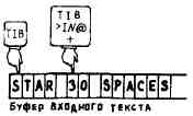 Зададим слову TYPE адрес, по которому, как нам известно, находится строка символов. Напомним, что начальный адрес буфера входного текста задается словом TIB (см. гл. 9 о вариантах диалектов). Допустим, вы вводите команду: