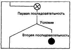 Если выражение в какой-либо альтернативной ветви опущено, то в этом месте проводится сплошная вертикальная линия: Расположение истинной и ложной ветвей (слева и справа) не имеет значения.