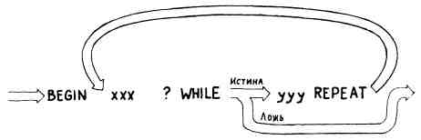 BEGIN ххх WHILE: ( ? -- ) Организация цикла с условием, причем ххх WHILE ууу выполняется всегда, а ууу—только REPEAT если ? истинно.
