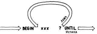 Цикл с условием. Циклическая структура, при которой слова, содержащиеся внутри цикла, повторяются до тех пор, пока не изменится некоторое условие истинности (с истины на ложь или со лжи на истину). В Форте бесконечный цикл начинается со слова BEGIN.